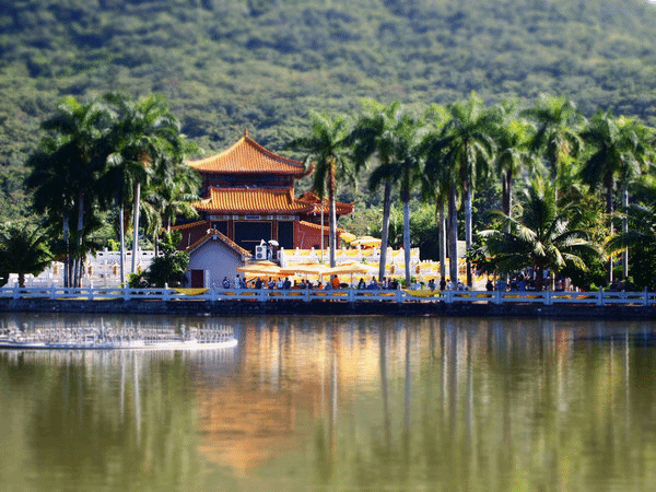 南山苑很大,以园林、美景、海上观音取胜,即使旅行团很多,也感受不到人声嘈杂,适合游览一天,中午选一家可以点菜的素斋餐厅(因为自助餐厅人太多了),南山的素斋味道很好。入门的时候适合步行一段小路,悠闲的逛逛,感受一下山路、雨林和庭院的幽静,感觉到有点累了,再乘坐电瓶车,电瓶车每站都停,其中“南山寺站”(除了寺庙外,菩提林、不老松、海滨的岩石滩都适合游览)、“海上观音”(除了远观观音像外,还可以从地下通道走到观音岛上游览),这两站适合游览1个小时左右。