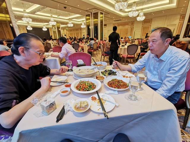 我办好入住手续,放好行李,下楼和吴、魏一起去酒店对面的一家餐厅吃饭。
