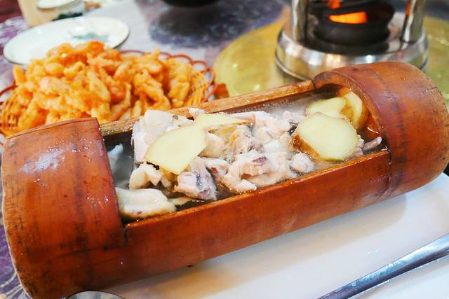 更惊喜的是,除了啤酒鱼,店家其他的桂林土菜也同样没有令我们失望。我比较喜欢的就是桂林特色竹筒鸡啦,香香嫩嫩的鸡肉,吃在口中,油汁四溢,口腔充满了香嫩的味道,还带着一股自然的清香。