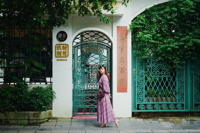 没错,就是这间隐享旗下的复古轻奢风民宿——隐享·玖号别院,来之前在网上一眼就被它吸引。据说它是由一间1866年的老宅改造而成的,墨绿色的铁门、红丝绒的沙发、精致的木地板、彩绘的玻璃花窗……恍惚间真的有一种回到了旧时上海滩的感觉。