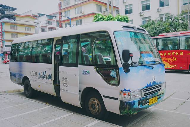 由于相公山离阳朔县城很远,我们又是两个人,包车十分不划算。于是我们机智地选择了今年刚刚开通的“心汇游”相公山旅游官方专线。往返于阳朔县城和相公山,车次便利,安全正规,而且对比包车200/人的价格,票价简直不能更可爱。