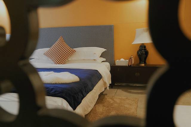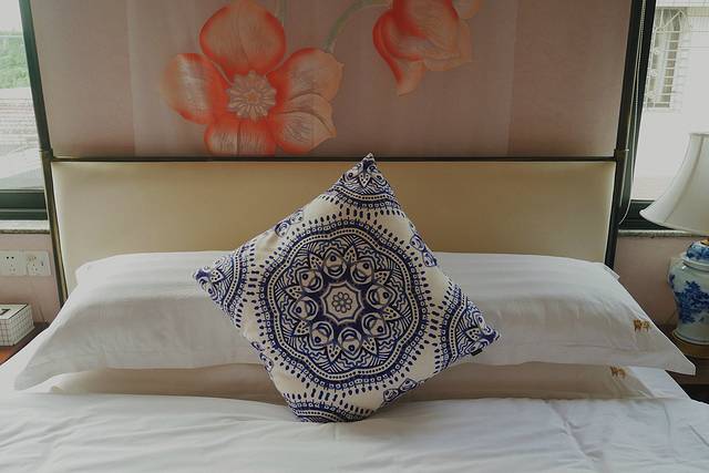 另外几位小伙伴选择的是江景大床房,相比于花园房的活泼时尚,江景房则更偏向于内敛和经典。从床具到摆件,都加入了传统中国风的青花瓷元素。