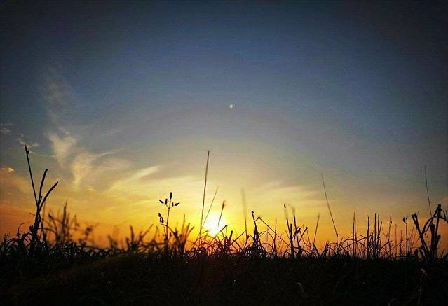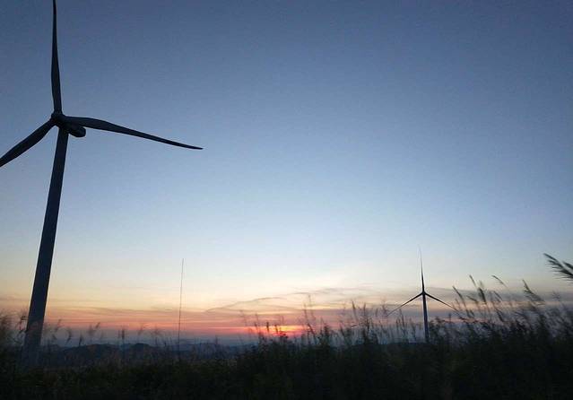 一直待到落日余晖散尽,我都没有离开过山顶这片草原,晚风徐徐,经过了一冬的野草,也开始了新生,站在巨大的风车底下,仰望着似乎伸手就可以攥到的晚霞,真想撕下一片放进衣服内包,留给未来的她。