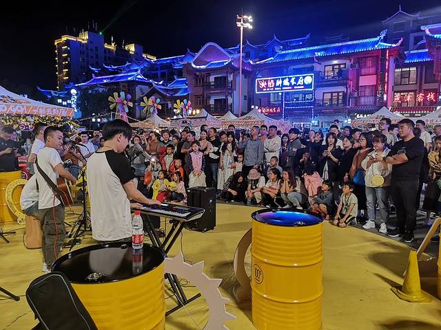 驱车到达荔波古镇,一转入停车场,这里人流密集,灯火通明,耳中传来一首《莉莉安》,似乎是有乐队在表演,来的正是时候,古镇广场正在举行活动。