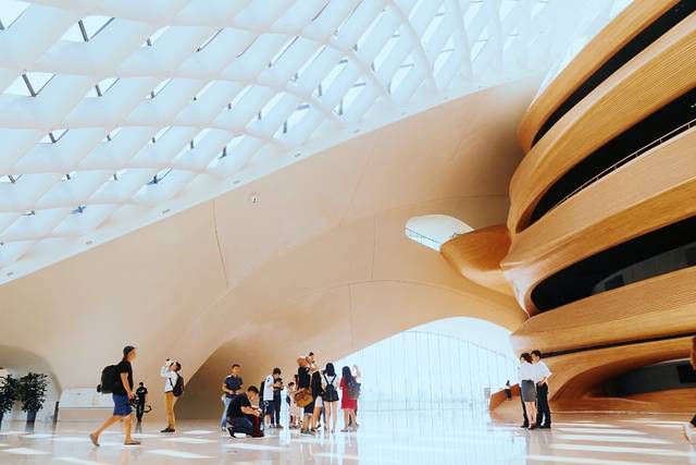 哈尔滨大剧院坐落于江北文化中心岛内,大小剧院加在一起有两千的座位,异形双曲面的设计让大剧院的外观极具美感,成为了哈尔滨的标志性建筑之一,其设计更是巧夺天工,世界首创的自然光引入,流线型舞台与人行观光环廊都别具一格。为了能让观众欣赏到正宗、纯正的歌剧演出,剧场不使用任何电子设备,全靠演员的嗓子表演,同时观众也能在不同功能厅体验交响乐、芭蕾、话剧等带来的完美感受。