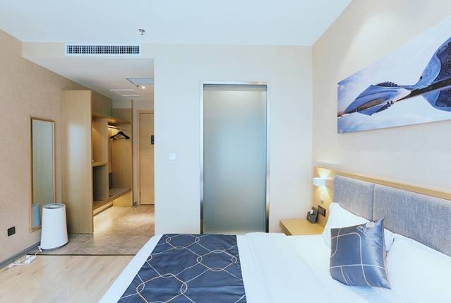 酒店很新,整体的配套设施齐全,客房内干净整洁,配备了空气净化器。色调搭配的也颇有讲究,能看出设计者用心的构思,为差旅中的人们提供最舒心的服务。