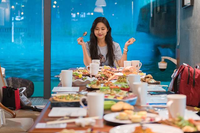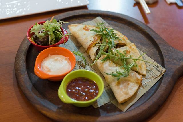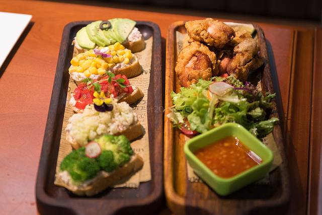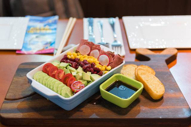 不同的餐具搭配不同的美食,让人感觉到了国外一样。