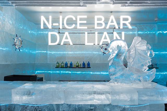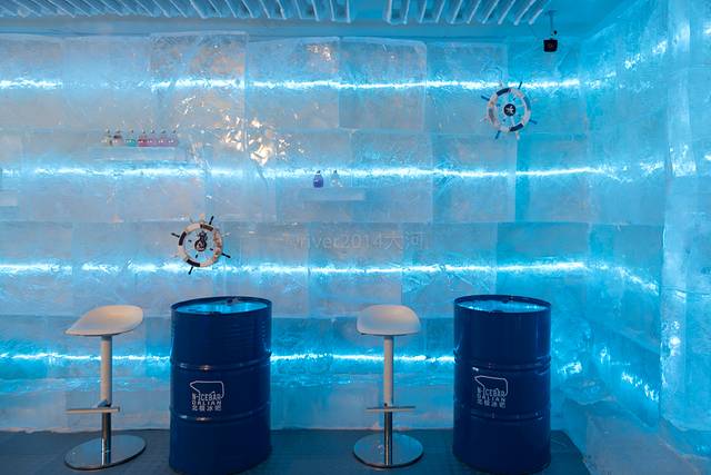 不管是什么季节,游客都要穿上厚厚的羽绒服,打开厚重的铁门,进入到冰吧内,这里常年保持零下6度的温度,随处可见冰块和各种冰雕。