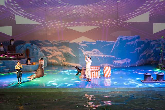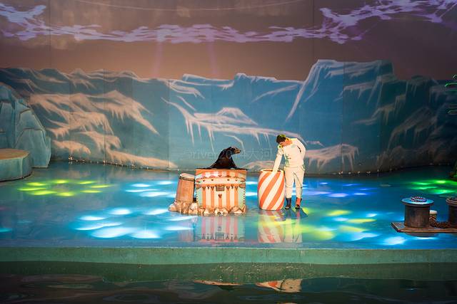 同在极地世界的功夫海象演出,则像是一场诙谐幽默的小品舞台剧,气氛轻松。