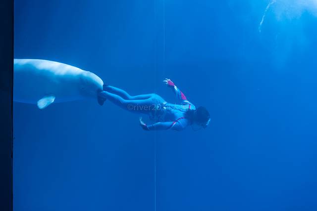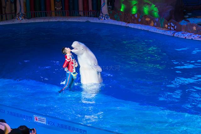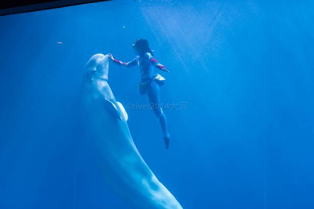 人与白鲸天衣无缝的完美配合,成就了一场精彩的演出,让游客更加了解神秘的海底世界。