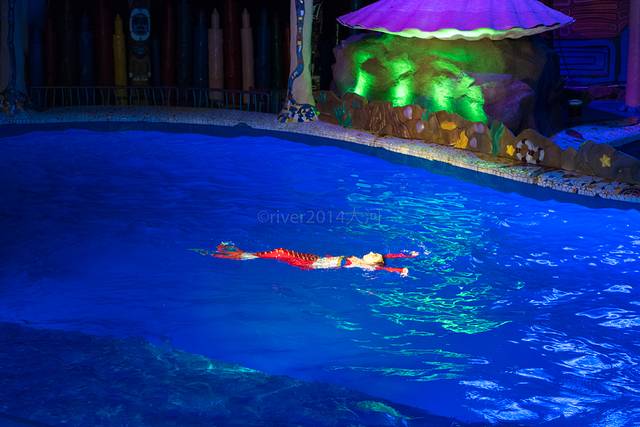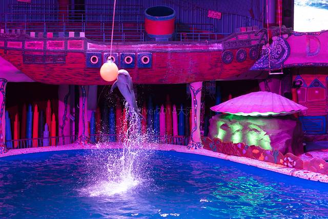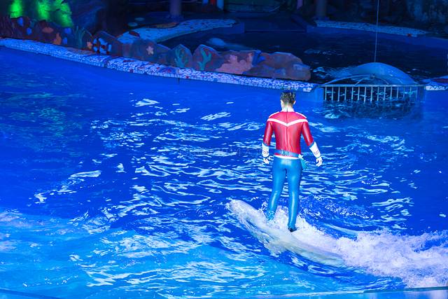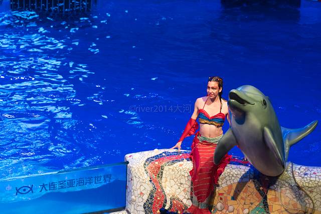 海豚是人类的好朋友,特别是在大海中,这一场演出就是演绎感人的故事,饰演美人鱼的演员还是一位国外美女。