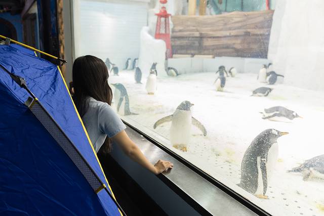 晚上夜宿在极地世界,与企鹅比邻而居,也是非常难忘的体验吧。