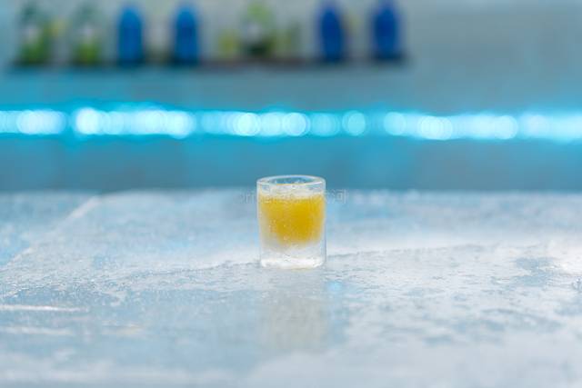 倒上一杯饮料,杯子也是用冰做成的,这是一个很适合拍照的地方。