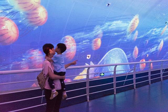 天幕电影让游客仿佛置身于海底世界,加上音响和音效,让人感受到海洋深处的震撼。