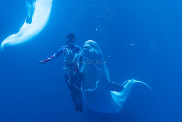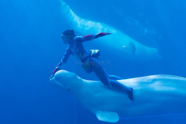 这里是双人双鲸的表演,堪称水下华尔兹。