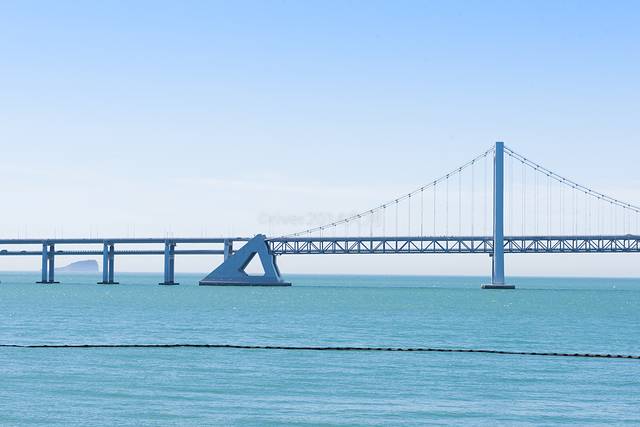 从挑月桥上看去,星海湾大桥如一条巨龙蜿蜒前行,夜景更美。