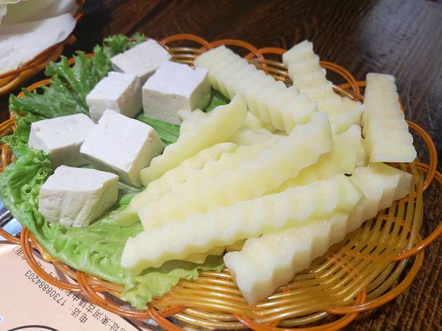 束河古镇有一家正宗的象山腊排骨,隔着老远就能闻到它散发出的香气。经过特殊腌制和晾置处理后,肉质口感极佳,肉香也很容易散发到汤汁中,不管在里面涮什么菜,捞起来都有腊排骨浓郁的香气,一口接一口,味道很是醇厚。