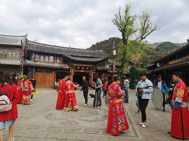 束河古镇位于丽江古城西北部,是纳西族先民在丽江坝子最早的聚居地之一,传说中的茶马古道就经过此地,古镇上随处可见一匹匹的马儿。束河相对于大研商业化的气息会淡一点点,古镇面积不大,不规则的道路,形形色色的商铺,不紧不慢的路人,地地道道的美食,诠释着束河与众不同的享受。顺着束河古镇正大门往里走,可以走到四方听音广场,这里有很多旅拍的情侣,穿着特别喜庆,也成为一道靓丽的风景线。