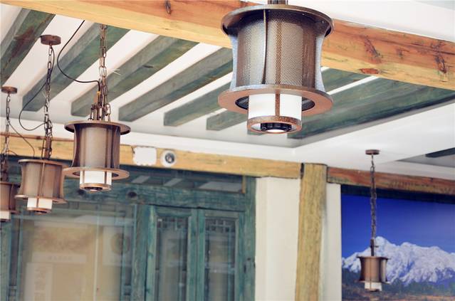 一个古色古香的院子,一棵年代久远的樱桃树,一株正在盛放的三角梅无不带给人一温馨舒适的感觉。店里上下两层,一层宽敞明亮的厨房,可以清楚的看到厨师在里而忙碌着。大厅已经坐满了人,沿着屋外的木制台阶来到二层,这里相对来说更为安静,正是我喜欢的样子。屋顶特色吊灯,墙上的纳西族画框,古朴中透着大众化的亲民和热情。