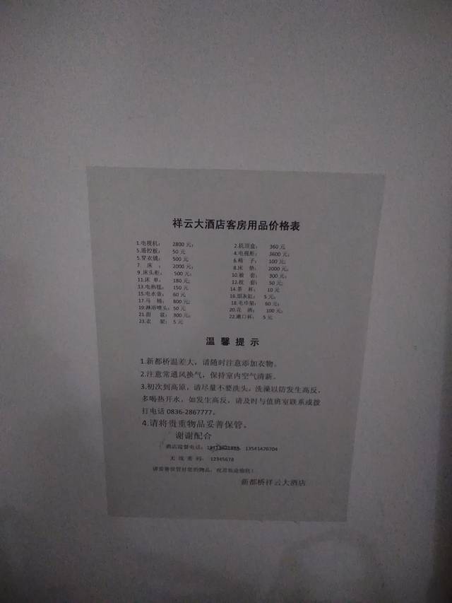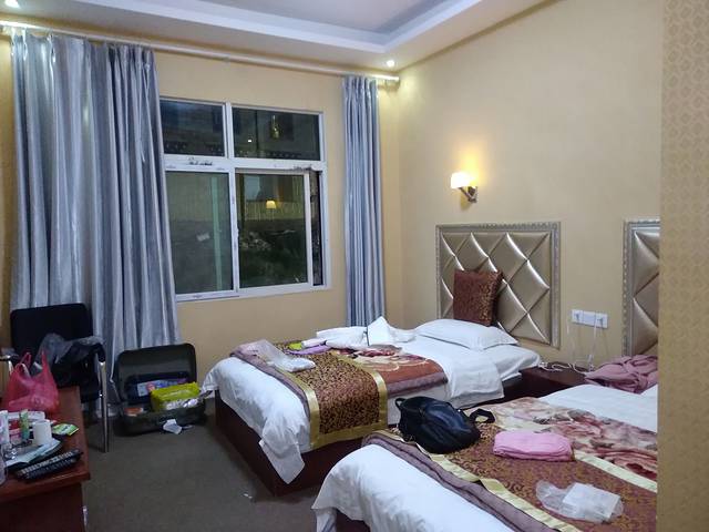 经过了一天的坐车登山爬坡,从海拔500米左右的成都到达3400米的新都桥镇的祥云大酒店住宿~