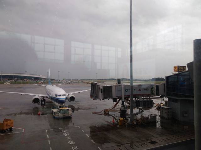 下午2点从佛山出发,乘坐地铁4点半左右到达白云国际机场T2航站楼,办完登机手续5点左右,没想到由于下大雨的原因,飞机晚点1个钟起飞~