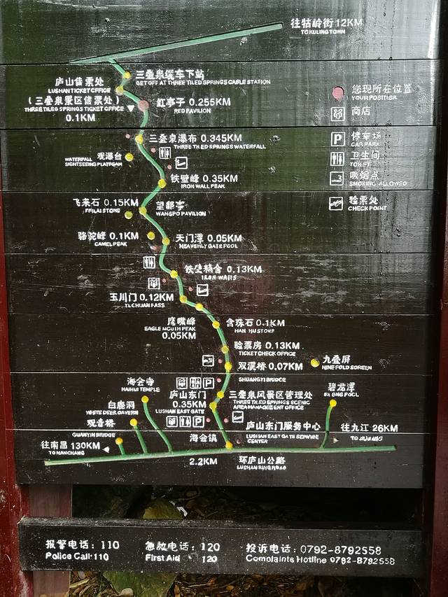 出站包车(的士100)到达庐山北门,买大门票160,换车经历300多个弯历时43分钟,4点左右到达到达牯岭街,附近炒饭+三鲜汤解决午餐