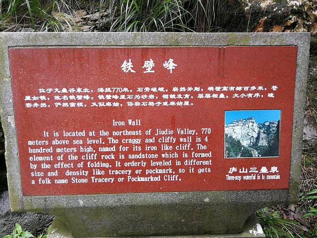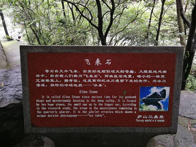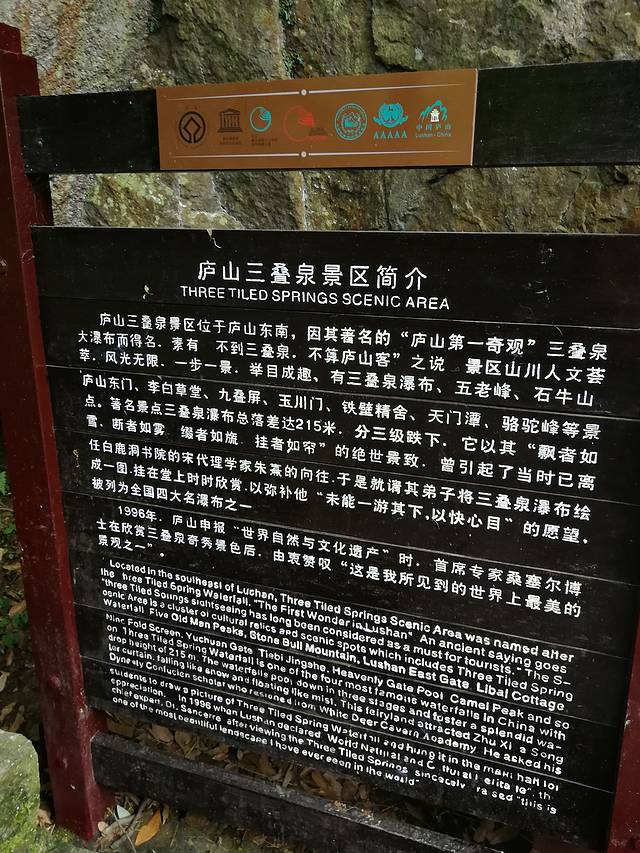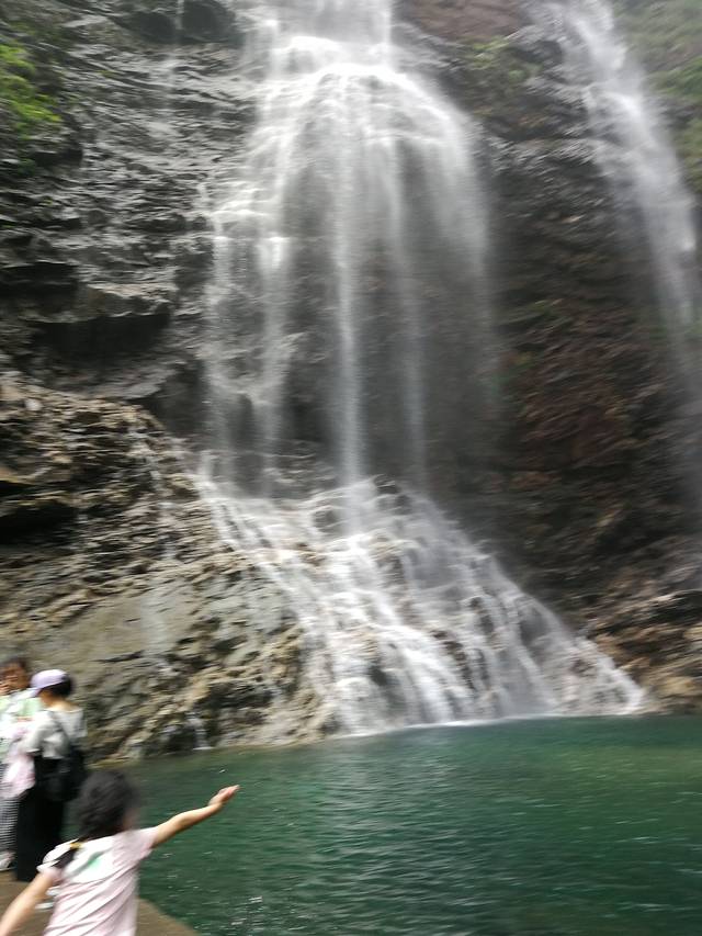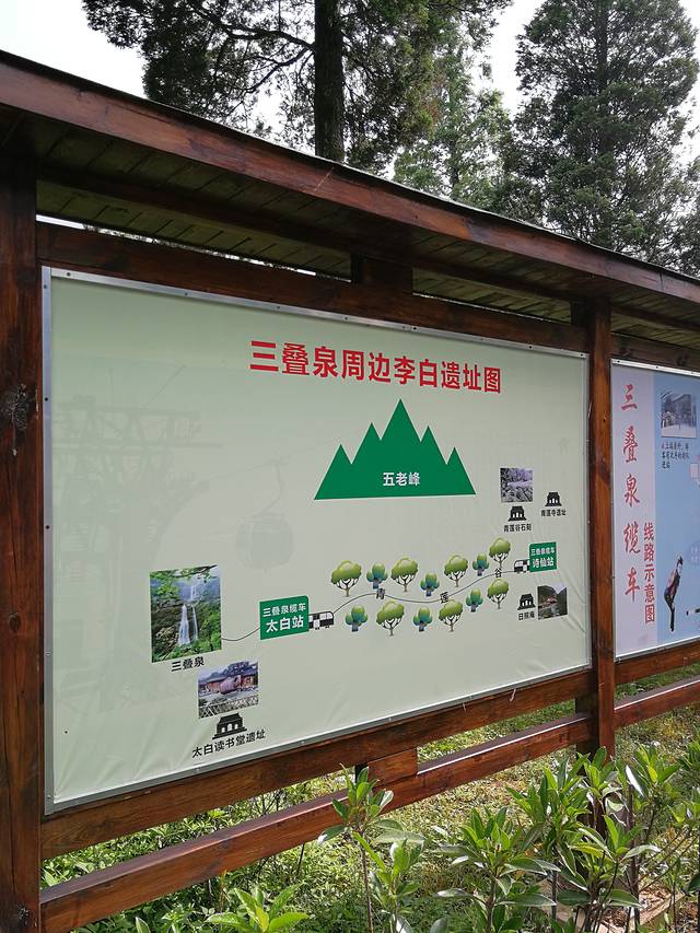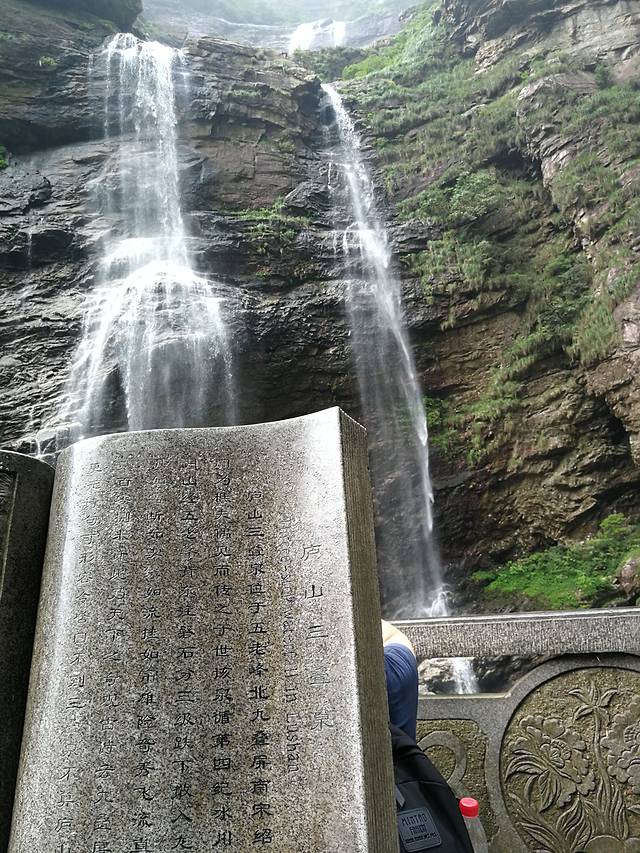 9.15 三叠泉缆车"诗仙号或太白号", 6分钟35元下到缆车下站(时间充裕的话,建议步行下山,别样风景),再步行下山,经过一叠,二叠泉(没注意看到),到达三叠泉观景平台,拼命找角度.位置使劲拍照