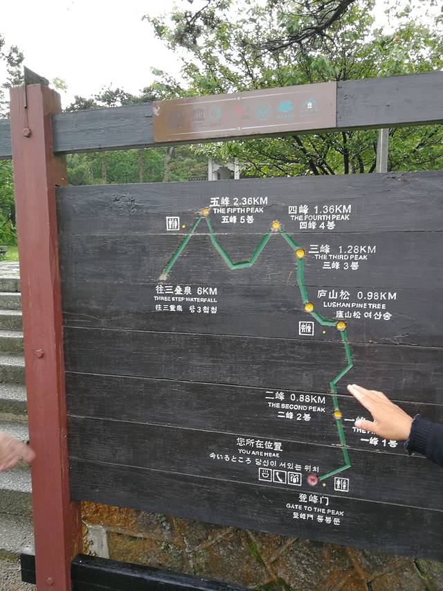 7.10 拾阶而上爬五老峰,一,二峰(天气晴好),三,四,五峰(雾气笼罩)
