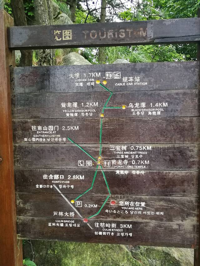 上午:8点15分到达芦林湖旁芦林大桥-黄龙寺(龙眼石)-三宝树-黄龙潭-乌龙潭-电站大坝-大坝坐缆车到悬索桥(来回45元)-石门涧瀑布(据说被私人承包,门票49元,偏贵,风景还行)-原路缆车返回到芦林大桥12点15分-毛泽东故居(庐山博物馆)-返回云尚居客栈