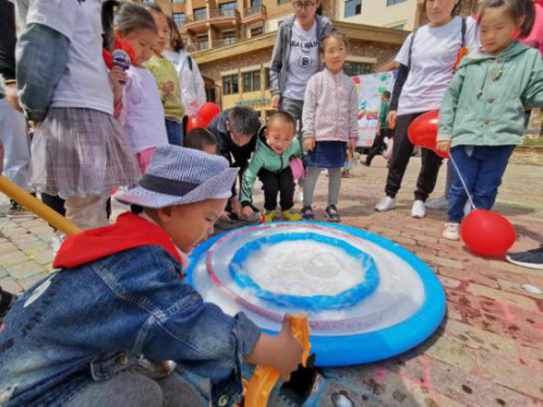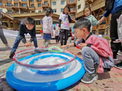 泡泡秀环节最热闹,全家老小吹泡泡,紫的绿的蓝的灰的,你的我的他的她的,大的小的圆的扁的,好的坏的美的丑的,在阳光的照射下折射出各种颜色。