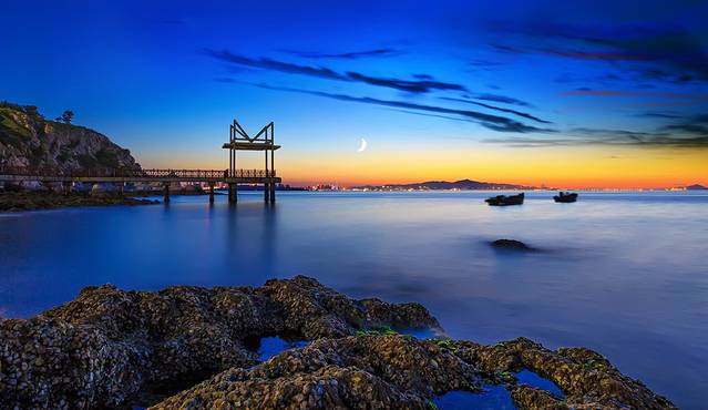 来到礁石滩上,在此驻足观看或者游玩、戏水,真正实现了与大海的"零距离"接触,能更加深刻地感受大海的宽广胸怀,运气好的朋友还能在这里拣拾到美丽的海星、螃蟹、鹅卵石等海中公民。