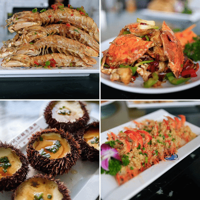 在这里强烈推荐:清蒸帝王蟹、 波士顿 大龙虾、辣炒螃蟹、粉丝蒸扇贝、红烧蛏子(还是第一次吃到这种做法的蛏子)、椒盐皮皮虾、海胆蒸蛋、爆炒芒果螺……