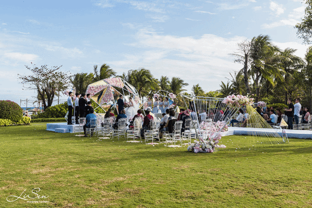 恰巧遇上一对新人的婚礼,不好意思走的太近,就这样远远望着,大家都很安静,听着他们相互间赋予的承诺,这一刻,是多么浪漫。