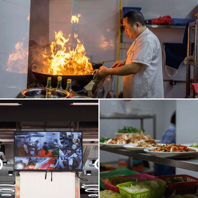 拿回店里就可以进行加工啦,这家店的餐厅是开放式,很有意思,门口还有一个监控器,可以观察到厨房的状态,妈妈再也不用担心我们的海鲜被调包啦。