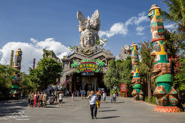 景点的大门很有特色,两旁是各色图腾柱,有一种穿梭在热带雨林的感觉,步入其间,仿佛进入了另外一个世界。