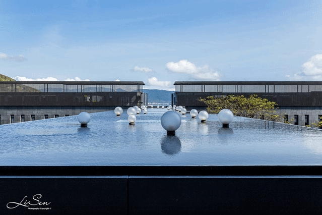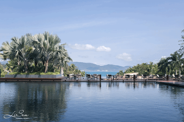 一汪水池,几道桌椅,来到此处,不妨点上一杯冷饮,戴上墨镜,沐浴着阳光,看着远方的山、海,不时有海风吹起周边的热带树木,带起莎莎的声响,好似时光在这一刻终于停止了,生活也变得更加简单了。此时此刻,是否正适合就这样静静地,思考人生。