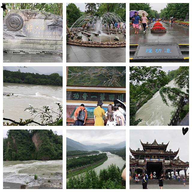 都江堰气势磅礴,整个景区都可以听到水声“毛澄何处滩声来,座上屋瓦战”,如海啸,如山崩,是我国一大奇迹,令人惊叹!景区入口处的堰功道,给为都江堰做贡献的功臣们树了石像。安澜索桥,你站在桥上摇晃,桥下江水急流穿梭,刺激!