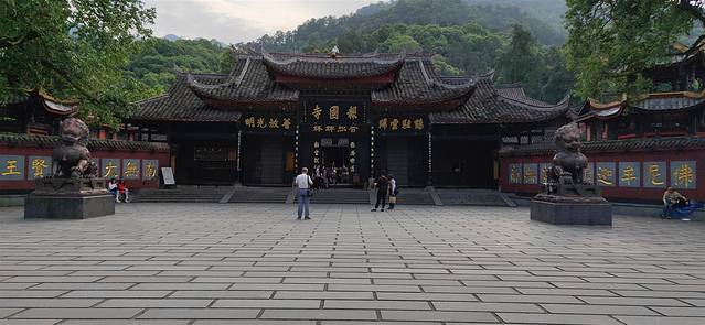办了入住,在房东的建议下到报国寺逛了一下。报国寺快关门了,没有买票,就在外面逛了一下,报国寺外面环境很好,很大。逛逛便去看到有峨眉山入口处有瀑布。