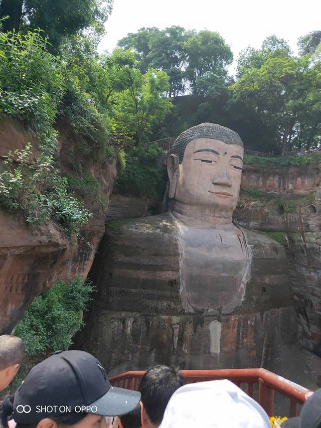 大佛就这样很轻松的游完了。原本以为,栈道很难,没想到,只是上来时只处台阶高的地方难点而以。上栈道时,遇到上峨眉山时缆车上的重庆阿姨,阿姨笑得好灿烂,“姑娘,我们有缘,又遇到了。”是呀,阿姨六十多了,身体硬朗,叔叔陪伴着也是笑容可掬。少时夫妻老来伴,此时上峨眉,到乐山,有许多这样的夫妻。赞!我们陪阿姨夫妻上来,又逛出大佛到休息点。休息后我们四人分开了。不远处有斋饭,自助的,一位29元,迅速美餐一顿。