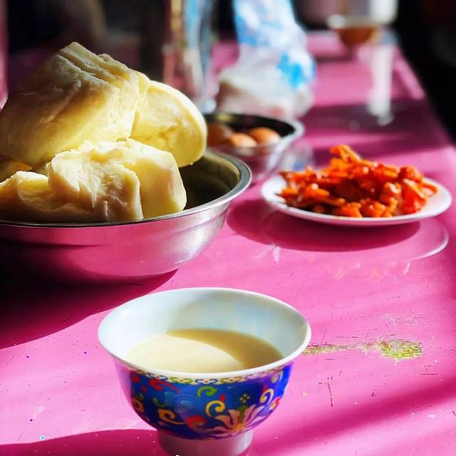 前往措卡湖的途中会经过同样美的新都桥,川西最明艳的景色都在这条路上了。进入藏区,你一定要尝酥油茶,最纯正的奶香暖胃更暖心。各种牛肉美食更是不容错过,地道的风干牦牛肉,藏区特有的牛肉包,味道新奇,口口入味。