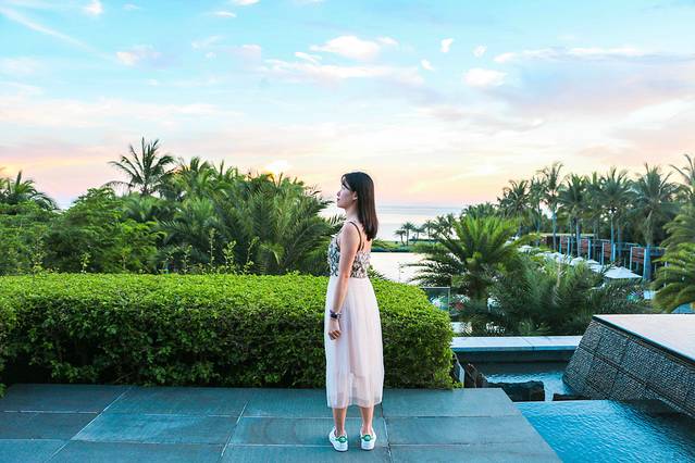 傍晚的威斯汀,小长裙卷入了微风的的思念,走着走着到了海边,听着清水湾的波涛,追着彩云,也被时间追着跑。
