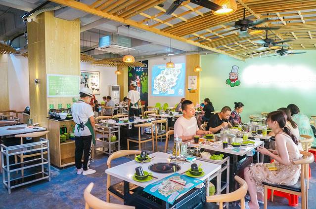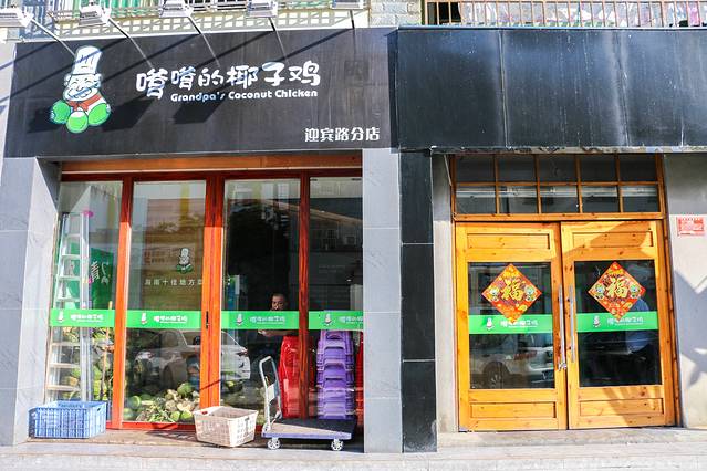 嗲嗲的椰子鸡在三亚有七家分店,我选择了离酒店最近的明珠广场(迎宾路)总店,嗲嗲家的椰子鸡在三亚是舌尖上的网红店,当天四五点到店里已经有不少人在用餐了。明珠广场店青绿色的色调宛如东郊椰林,墙壁上、餐桌上还有服务员都有一种小清新之感,放眼望去,每桌的位子整洁有序,服务员会时不时地帮客人清理桌面,给顾客一个更整洁的用餐体验。