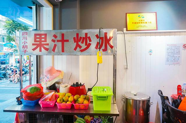 在三亚每一顿大餐都离不开鲜榨果汁,在四川小胡子这里就可以点到果味浓郁又实在的果汁,我们点了一份芒果冰,送来的时候,一股芒果香味在屋里飘香。