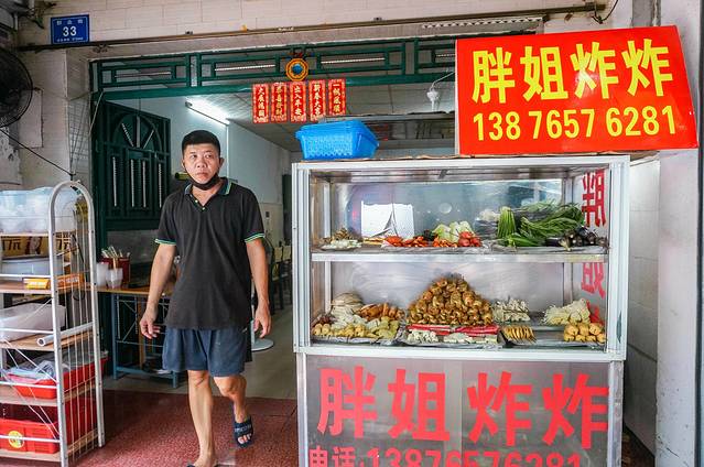 在三亚的群众街隐藏着许多三亚小吃,这条街看上去十分的普通,摩托车和自行车摆满了整条街显得有些杂乱。来到群众街,是为了吃胖姐炸炸。“炸炸”这个可爱的名词是本地人给炸串起的别名,别看三亚这么热的天气,喜欢吃炸炸的人却不少,许多人慕名而来拔草这家网红炸炸。店面不起眼,装修也比较简单,来找的朋友们多留意下路边小店。