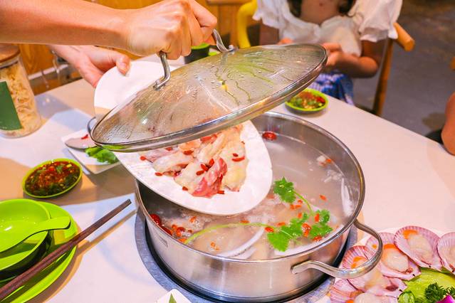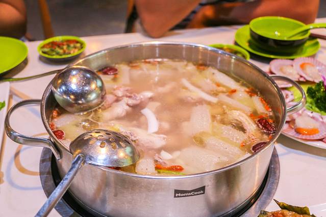 嗲嗲家的汤锅少不了纯正的椰子水,服务员会现场带来一个大椰子倒入所有的椰汁,倒入椰汁的瞬间仿佛空气中都弥漫着一股海岛椰香,此时的我迫不及待地想喝上一口甘甜清爽的“心灵鸡汤”,浸润心肺。
