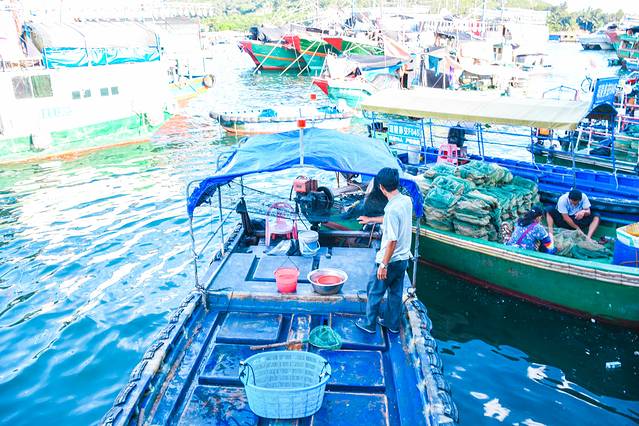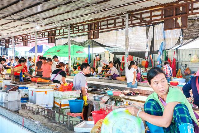 越往里走,就看到了一个当地的鱼市,一走进这,我想起了两年前在斯里兰卡尼甘布逛鱼市,鱼市旁边就是海,渔民把鱼网带上岸后即可以开卖,快到了傍晚,这里的渔船大多数都回来了,此时的鱼市还是一片热闹。