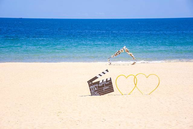 呆呆岛的海滩上有很多这种摄影拍摄道具,呆呆岛是很多婚纱摄影的拍摄地,很多新人在这里拍摄婚纱照,我来到呆呆岛是下午,这个时候拍婚摄的不太多。