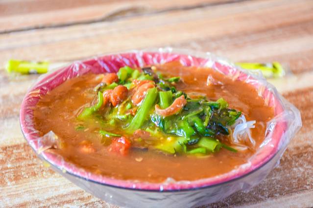 酸粉是陵水县的一种特色小吃,源自陵水县安马村一位胡姓男子之手,主要材料有细长的米粉,牛肉干,沙虫干,鱼饼等,淋上特质的米醋和卤汁,荤素搭配,酸辣甜香,清爽可口,这是海的味道,也是陵水人骨子里的味道。