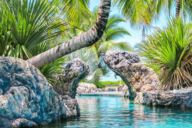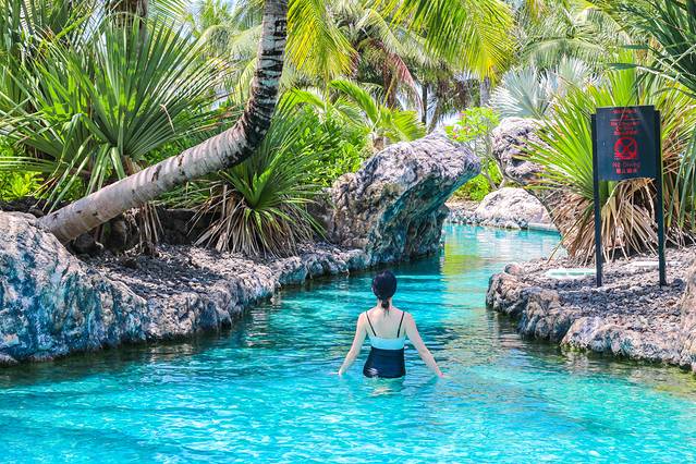 在威斯汀的大泳池旁边,还有一处人少的的泳池区域,这里的泳池景色像纯天然的一样,有两个滑滑梯可以直接滑到这里来,不过这一片区域在主泳池的旁边,所以人很少,这里才是威斯汀泳池的精华段,!