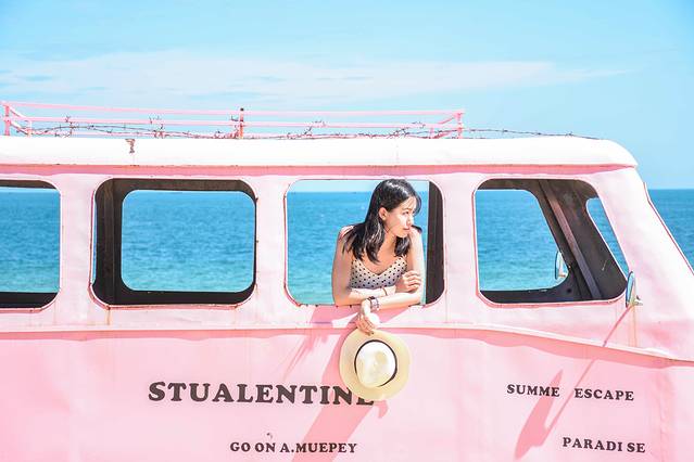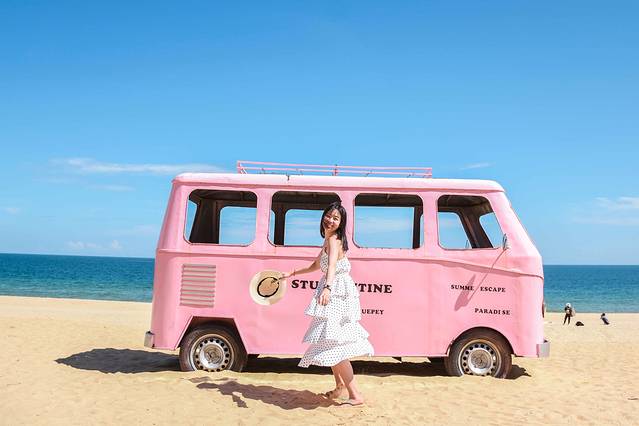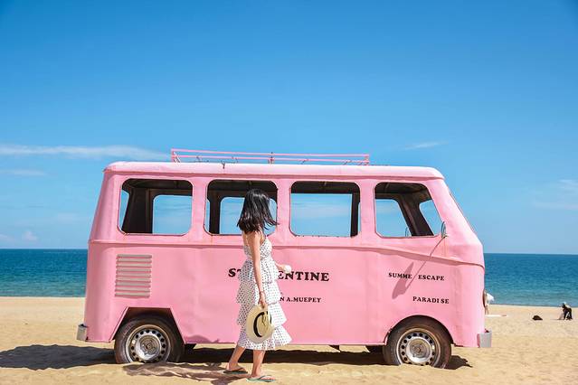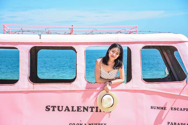观光车沿着海边小路行驶,放眼望去海水的碧蓝透彻可见,微微热的海风不断吹来,午后的阳光虽然猛烈,但不会背光,所以此时拍出来的景色非常好看。还看不够车上的海景,很快就到达呆呆了。